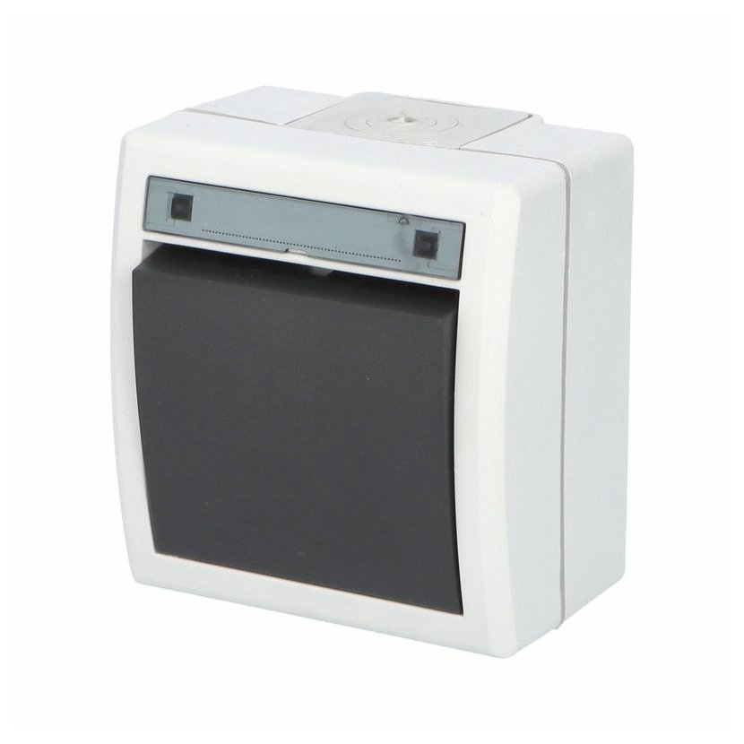 ATLAS 2K 19075-09 IP55 Přepínač střídavý č.6, na povrch, antracitový RAL 7016. Rozteč kotvících bodů (výška x šířka ): 61x49mm.