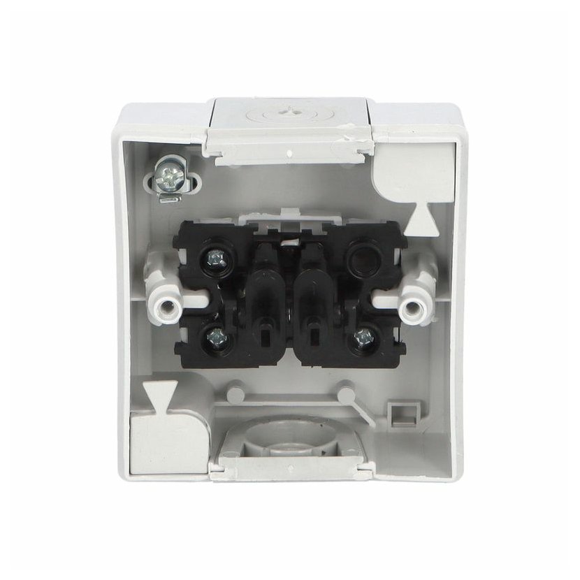 ATLAS 19094 IP55 Přepínač č.6 + zásuvka 2x 2P+PE, 2-násobná vodorovně s ochr. kolíkem, na povrch, šedý. Provedení v šedé barvě RAL 7035 a ovládacím prvkem v barvě RAL 7043. Rozteč kotvících bodů…