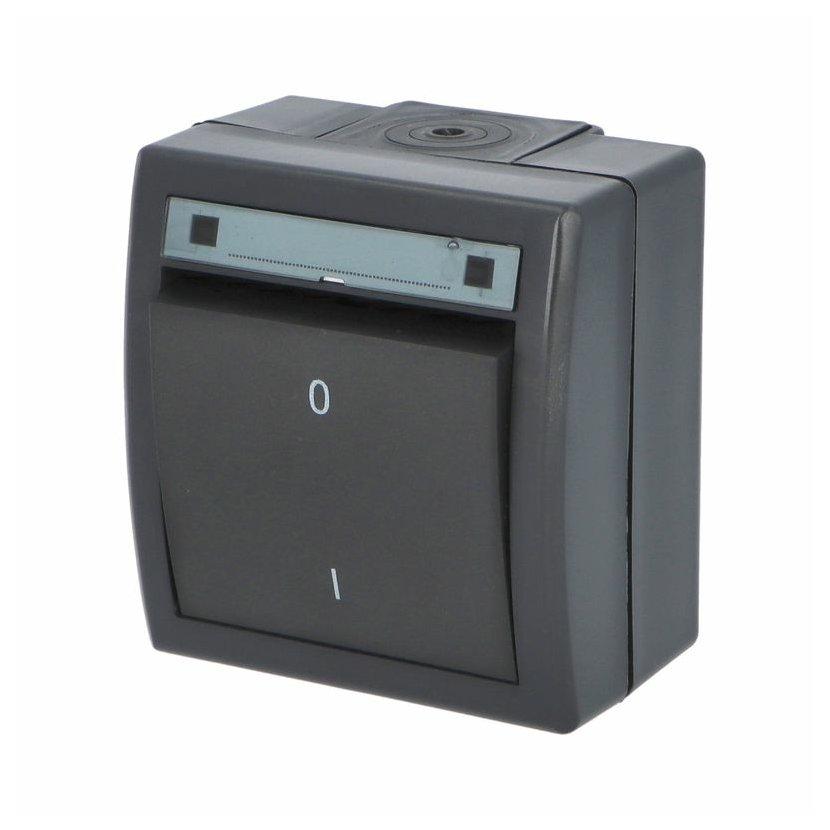 ATLAS 2K 19085-07 IP55 Spínač dvoupólový č.2, na povrch, šedý. Provedení v šedé barvě RAL 7035 a ovládacím prvkem v barvě RAL 7016. Rozteč kotvících bodů (výška x šířka ): 61x49mm.