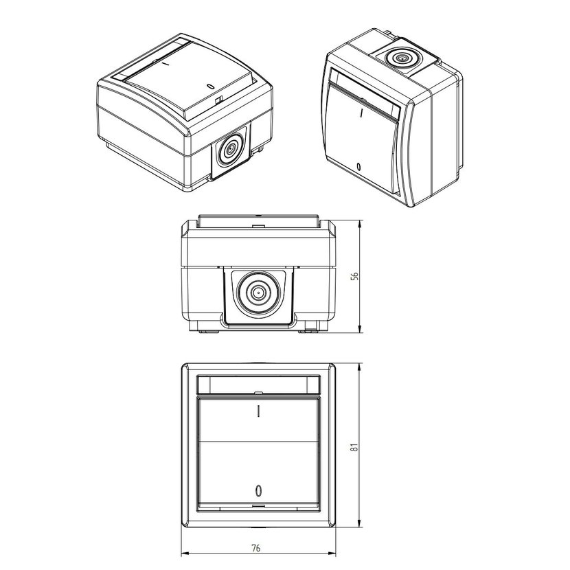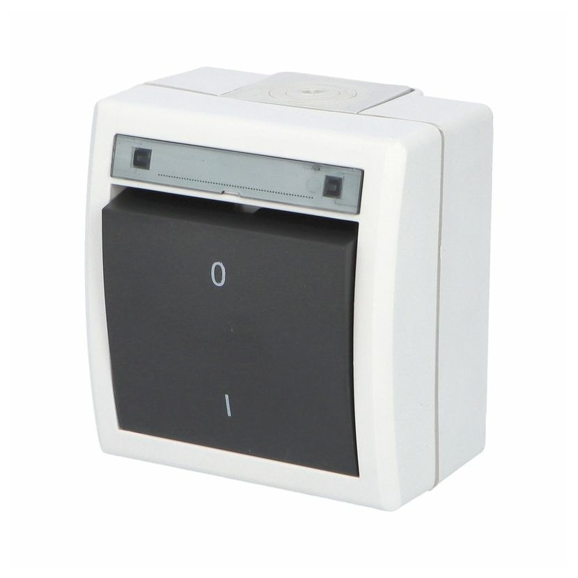ATLAS 2K 19085-07 IP55 Spínač dvoupólový č.2, na povrch, šedý. Provedení v šedé barvě RAL 7035 a ovládacím prvkem v barvě RAL 7016. Rozteč kotvících bodů (výška x šířka ): 61x49mm.