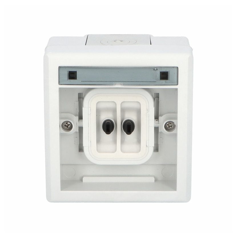 ATLAS 19077 IP55 Tlačítko symbol "zvonek" č.1/0, na povrch, šedé. Provedení v šedé barvě RAL 7035 a ovládacím prvkem v barvě RAL 7043. Rozteč kotvících bodů (výška x šířka ): 61x49mm.