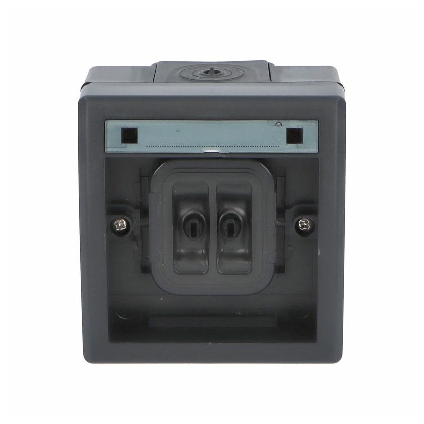ATLAS 2K 19098-07 IP55 Tlačítko symbol "klíč" č.1/0,, na povrch, šedý. Provedení v šedé barvě RAL 7035 a ovládacím prvkem v barvě RAL 7016. Rozteč kotvících bodů (výška x šířka ): 61x49mm.