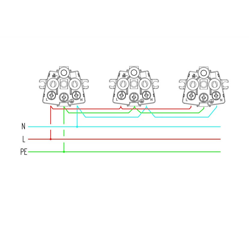 Adaptér trojnásobný 187F-5 IP54//16A/400V/50/60Hz - PLAST, 3x domovní zásuvka s ochranným kolíkem dle ČSN, 5P svorkovnice, černý, přímá. Závěsné očko. Materiál plast PA6/ guma TPE. S těsnící gumovou…