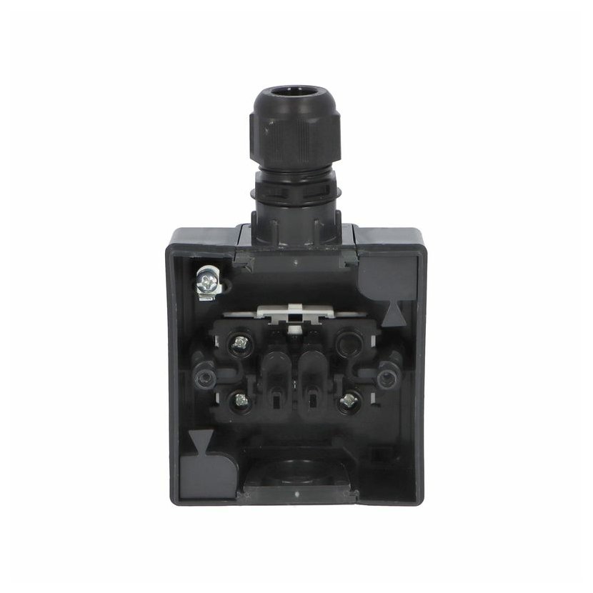 ATLAS 19175 IP65 Přepínač střídavý č.6 s vývodkou M20, na povrch, šedý. Provedení v šedé barvě RAL 7035 a ovládacím prvkem v barvě RAL 7043. Rozteč kotvících bodů (výška x šířka ): 61x49mm.