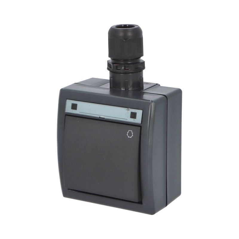 ATLAS 2K 19079-09 IP55 Tlačítko symbol "světlo" č.1/0, na povrch, antracitové RAL 7016. Rozteč kotvících bodů (výška x šířka ): 61x49mm.