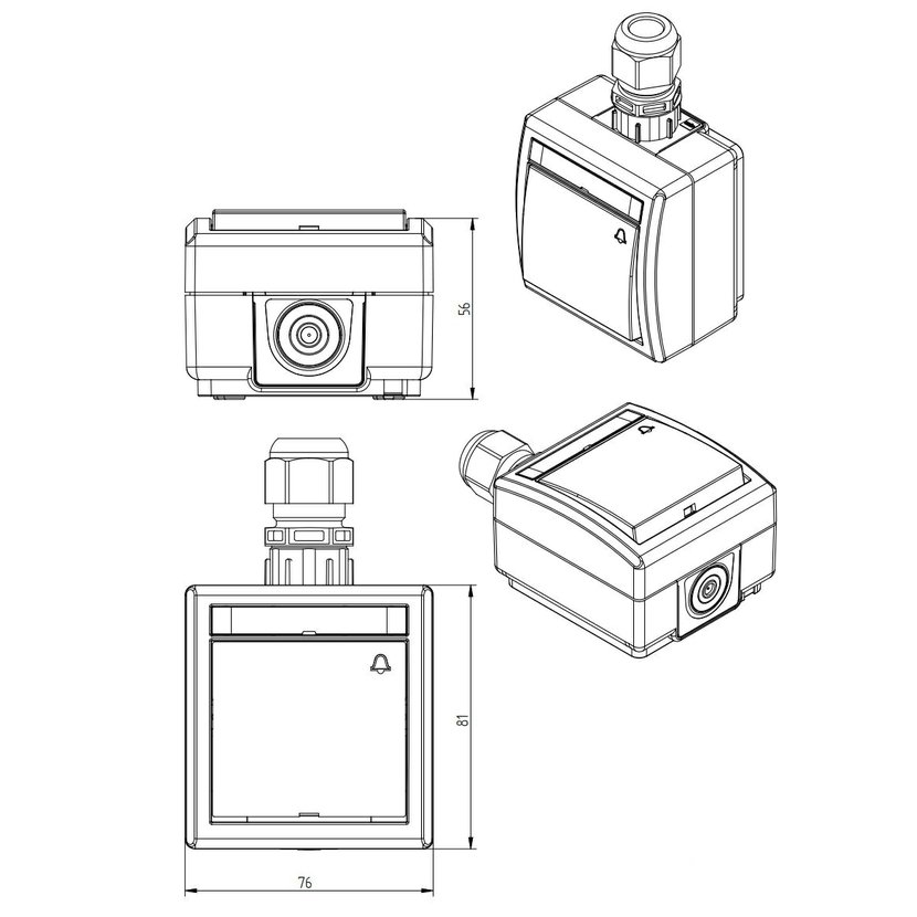 ATLAS 2K 19077-09 IP55 Tlačítko symbol "zvonek" č.1/0, na povrch, antracitové RAL 7016. Rozteč kotvících bodů (výška x šířka ): 61x49mm.