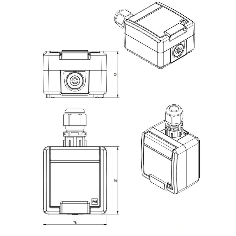 ATLAS 2K 19082-09 IP55 Zásuvka 2P+PE s ochr. kolíkem, na povrch, antracitová RAL 7016. Rozteč kotvících bodů (výška x šířka ): 63x59mm.