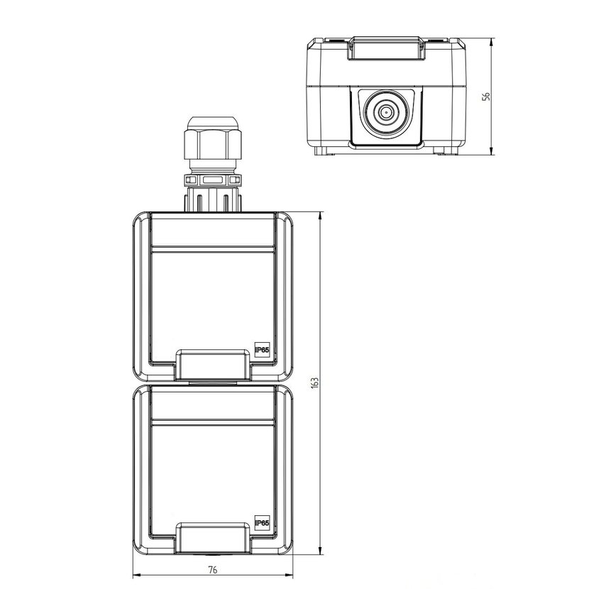 ATLAS 2K 19187-09 IP65 Zásuvka 2x 2P+PE, 2-násobná svislá s vývodkou M20, na povrch, antracitová RAL 7016. Rozteč kotvících bodů (výška x šířka ): 147x59mm.