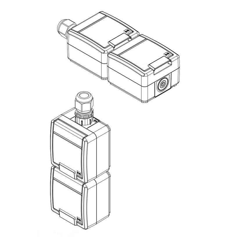 ATLAS 2K 19083-07 IP55 Zásuvka 2x 2P+PE, 2-násobná vodorovná s ochr. kolíkem, na povrch, šedá. Provedení v šedé barvě RAL 7035 a ovládacím prvkem v barvě RAL 7016. Rozteč kotvících bodů (výška x šířka…