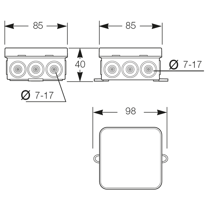 Parametre produktu Krabice K12 IP55 rozbočovací, s naklapávacím víčkem, 85x85x40mm