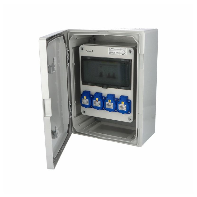 MFBOX (rozváděč nízkého napětí) mf143-6kA-MFF40000000.1 /5810/39134 IP54 jištěný s chráničem 25/2/003-A, zásuvky 4x230V/16A (s ochranným kolíkem dle ČSN), jistící přístroje FAMATEL 6kA: 2xKBF1B16 B16/1, AUR8225A030 25/2/003-A (citlivost na reziduální proud 30mA), použité pouzdro: 5810 - celkem k dispozici 10mod. míst, rozměry: 270x220x120mm, plastová, materiál ABS, IK08, zkouška žhavou smyčkou 650°C, bezhalogenová a UV odolná, montáž na povrch, barva: světle šedá, rozsah teplot -25°C +85°C, aplikované normy: IEC 61439-3 (Rozváděče nízkého napětí - Část 3: Rozvodnice určené k provozování laiky (DBO), balení: 1ks (karton), zásuvky na 230V/16A s ochranným kolíkem dle ČSN, polykarbonátové okénko, jistící prvky EATON, PE svorkovice součástí, N svorkovice součástí, hladké stěny pro volitelné vyvrtání vstupního otvoru a následné osazení příslušnou vývodkou (2xM20x1,5), dodáno s průvodní dokumentací: štítkem rozváděče, návodem pro obsluhu a montáž, krycím listem (charakteristiky rozhraní), protokolem o kusové zkoušce, ES prohlášením o shodě, schématem zapojení a zkouškou oteplení pro rozváděče nízkého napětí. Osazena v plastové skříni IP65, rozměry: 400x300x165mm (výška x šířka x hloubka), na ocelové montážní desce. Plné dveře - otevírání plastovým trojhranem, možnost změnit směr otevírání, hladké boky. Sada vnějších úchytů zaručuje rychlou a bezproblémovou instalaci. Recyklační poplatek je zahrnut v ceně výrobku.