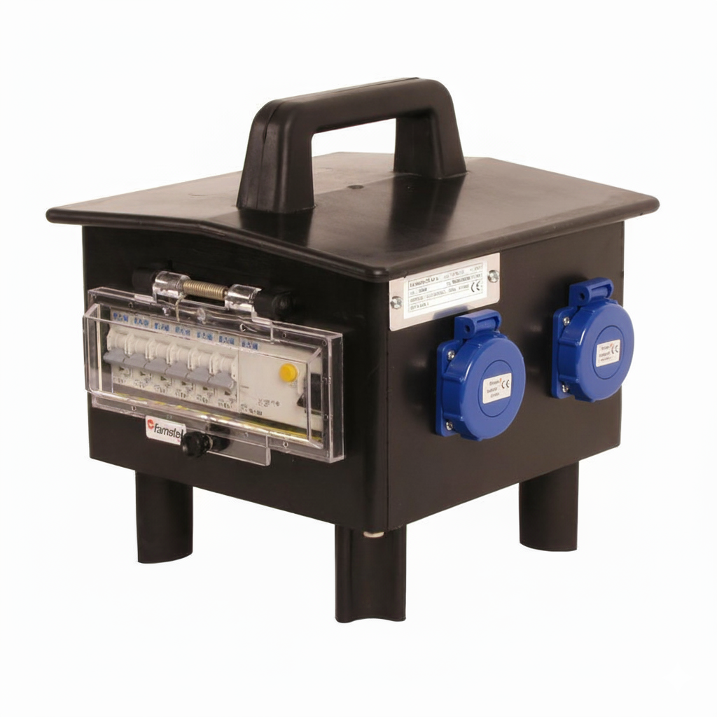 Přenosná zásuvková skříň FAMATEL eb373-EB600000.1 /4M IP44 jištěná s chráničem 25/2/003-A, zásuvky 6x230V, přístroje EATON 10kA: 2xPL7-B16/1, PF7-25/2/003-A na vstupu, použité pouzdro: 6201-10 (4mod.)…