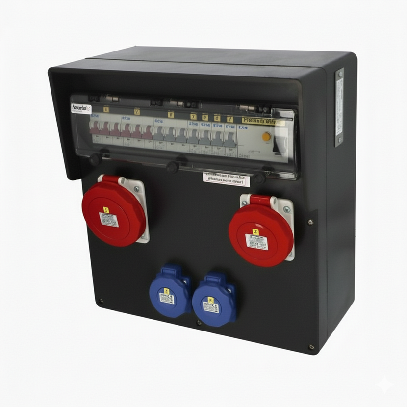 Vysoce odolná zásuvková skříň (rozváděč nízkého napětí) rb8156-RB20100010.1 /4030 IP65 jištěná s chráničem 63/4/003-A, zásuvky 2x230V/16A (s ochranným kolíkem dle ČSN), 1x400V/16A/5pól, 1x400V/63A/5pól , jistící přístroje EATON 10kA: 2xPL7-B16/1, 1xPL7-B16/3, 1xPL7-B50/3, PF7-63/4/003-A na vstupu (citlivost na reziduální proud 30mA), použité pouzdro: 4030 - celkem k dispozici 18mod. míst, rozměry: 380x370x170mm, tvrzená guma (butyl), zkouška žhavou smyčkou 960°C, bezhalogenová a UV odolná, montáž na povrch, barva: černá, rozsah teplot -20°C +85°C, aplikované normy: IEC 61439-3 (Rozváděče nízkého napětí - Část 3: Rozvodnice určené k provozování laiky (DBO), balení: 1ks (fólie), polykarbonátové transparetní okénko, jistící prvky EATON, PE svorkovice součástí (6x16mm2), N svorkovice součástí (6x16mm2), hladké stěny pro vyvrtání vstupního otvoru a následné osazení příslušnou vývodkou (pro CYKY 5x6; 4x10; 5x10 => M25; pro CYKY 5x16 => M32), max. připojitelný vstupní kabel = 4x25 nebo 5x16 (Cu), dodáno s průvodní dokumentací: štítkem rozváděče, návodem pro obsluhu a montáž, krycím listem (charakteristiky rozhraní), protokolem o kusové zkoušce, ES prohlášením o shodě, schématem zapojení a zkouškou oteplení pro rozváděče nízkého napětí.
