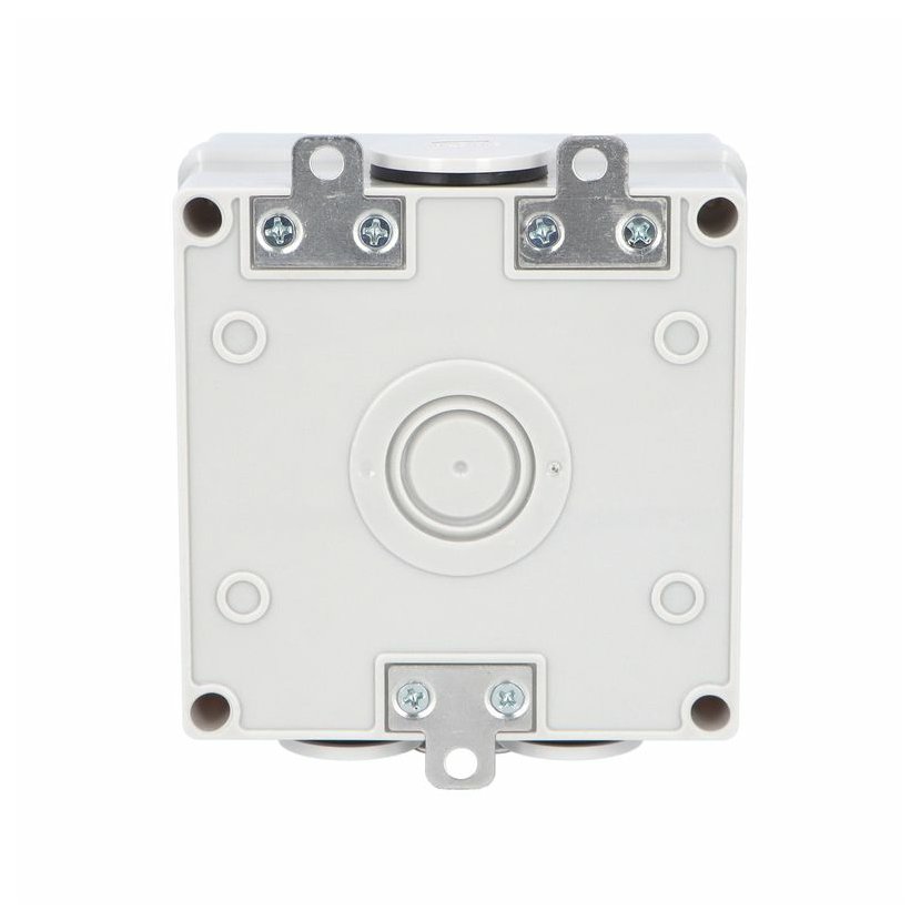 ATLAS 19182 IP65 Zásuvka 2P+PE s vývodkou M20, na povrch, šedá. Provedení v šedé barvě RAL 7035 a ovládacím prvkem v barvě RAL 7043. Rozteč kotvících bodů (výška x šířka ): 63x59mm.