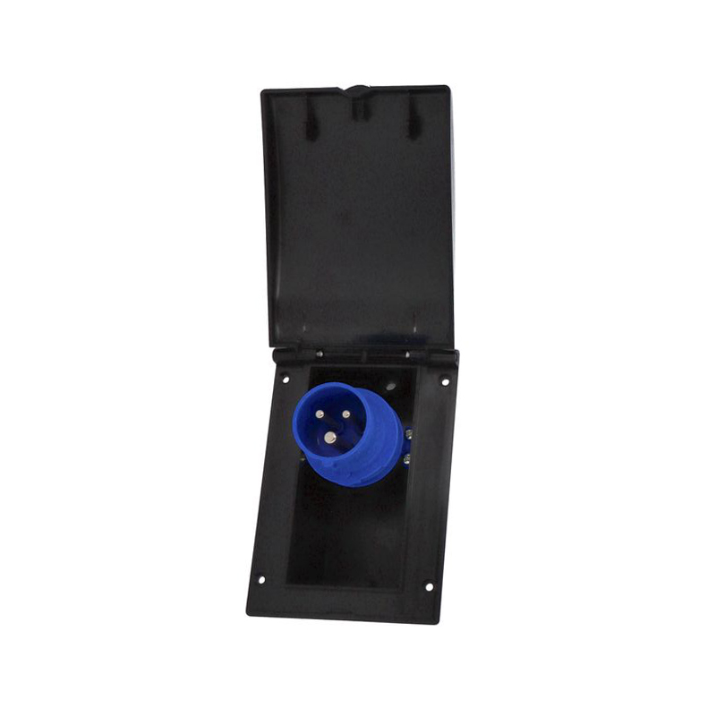 Výklopná zapuštěná vidlice Famatel 13362 IP44/230V/16A/3P, pro napájení karavanů. Splňující normy IEC/CE/EN 60309-1, IEC/CE/EN 60309-2.